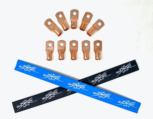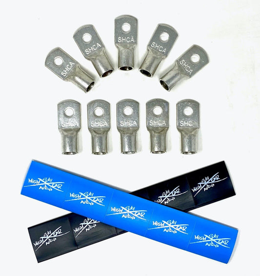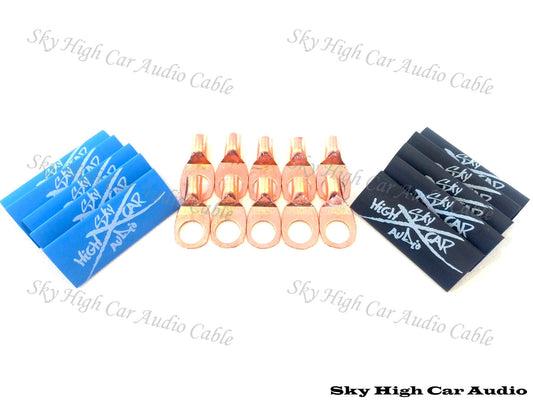 Sky High Car Audio 4/0 XL Gauge Copper Ring Terminals w/ Heat Shrink Tubing - 10 Pack